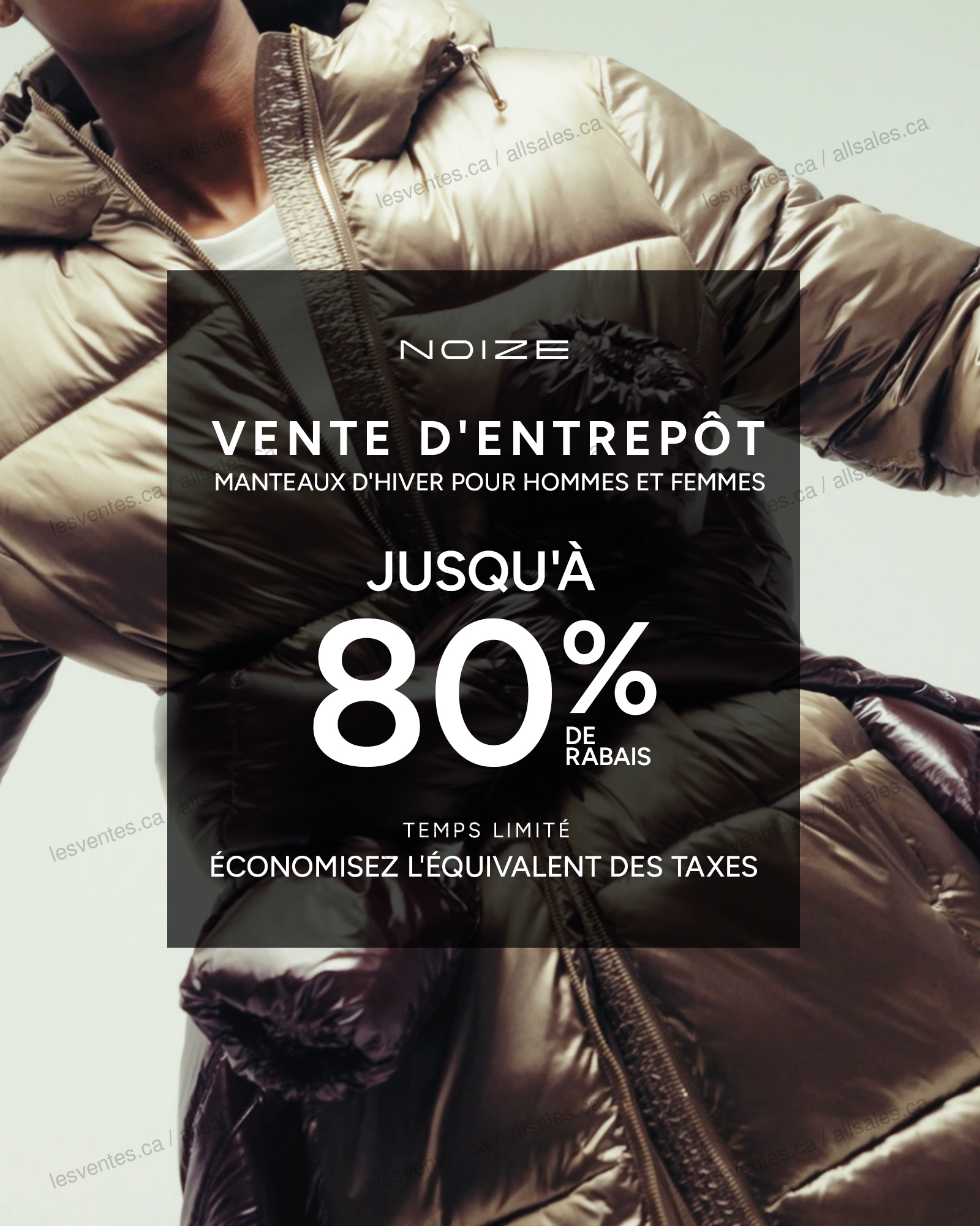 Ne manquez pas la vente d'entrepôts de manteaux d'hiver pour hommes et femmes Noize. Jusqu'à 80% de rabais sur une vaste sélection de manteaux d'hiver en plus d'économiser l'équivalent des taxes jusqu'au 16 novembre 2025.