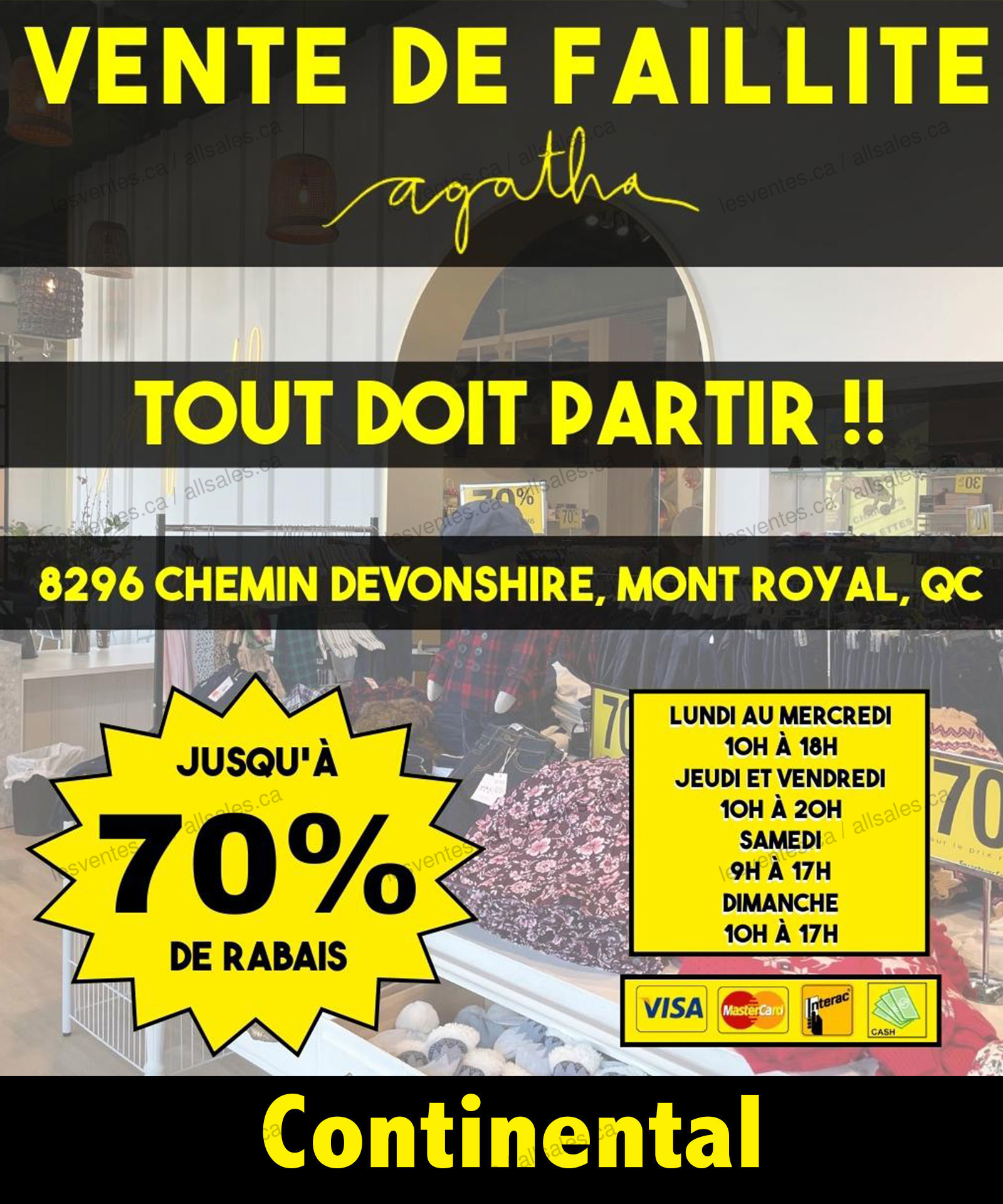 | Adresse | Boutique Agatha - 8296 Chemin Devonshire, Mont-Royal (Québec) H4P 2P7 Canada Google Maps |