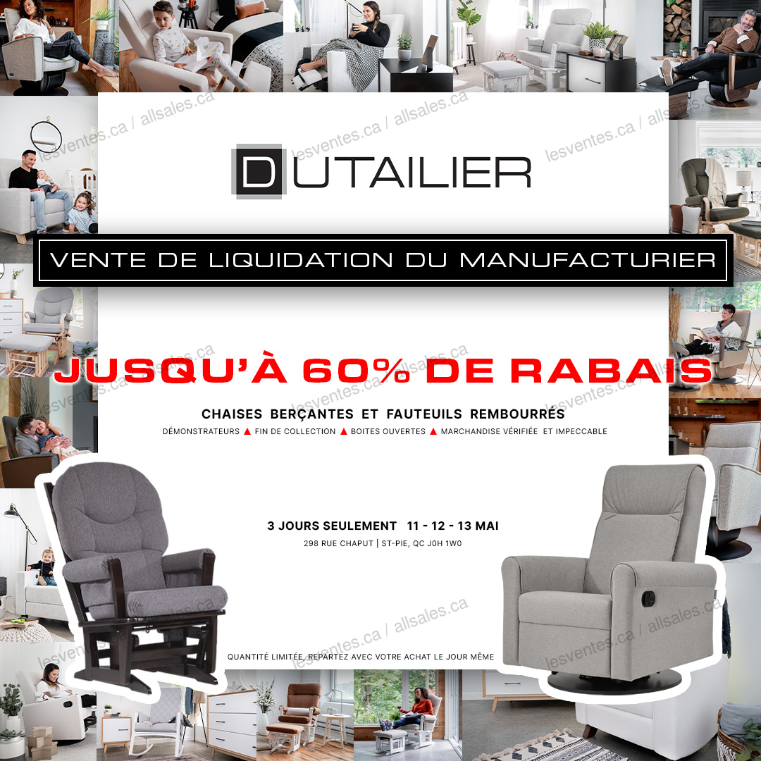 Magasin de liquidation Dutailier - 298 Rue Chaput, porte 7, Saint-Pie (Québec) J0H 1W0 Canada
