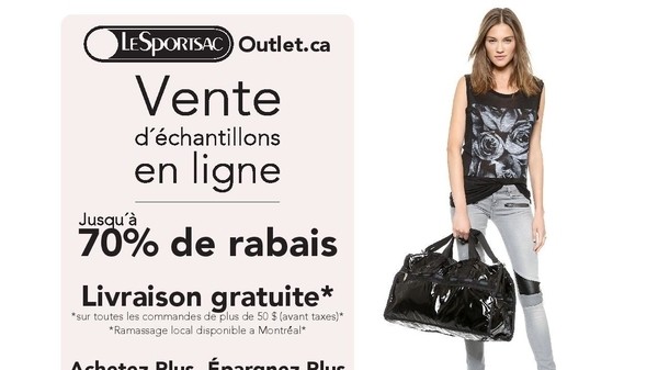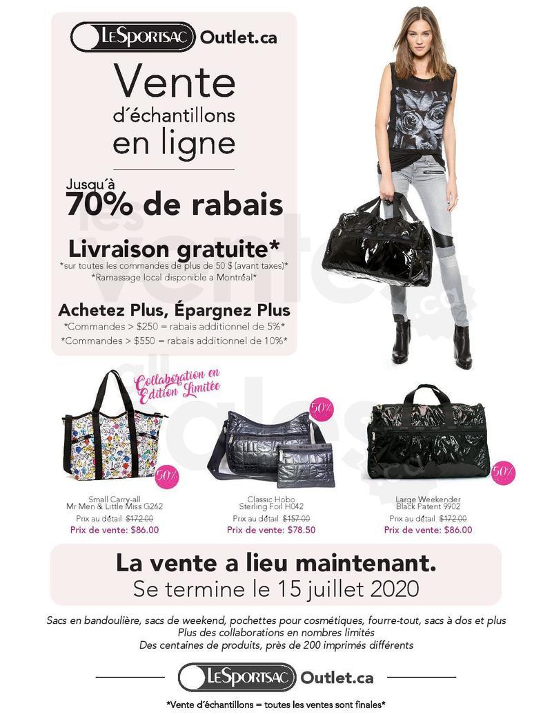 Vente d'échantillons en ligne LeSportsac Outlet jusqu'au 15 juillet! Obtenez jusqu'à 70% de rabais sur les sacs en bandoulière, pochettes de cosmétiques, fourre-tout, sacs à dos et plus.