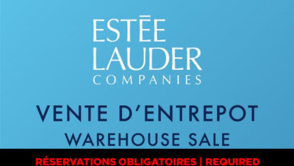 Vente d'entrepôt Estée Lauder companies du 17 au 21 novembre 2021! 50% de réduction ou plus* sur des marques telles Clinique, MAC, Glamglow, Origins, smashbox, Michael Kors et plus encore! Maquillage, soin de la peau et des cheveux, parfums et plus!