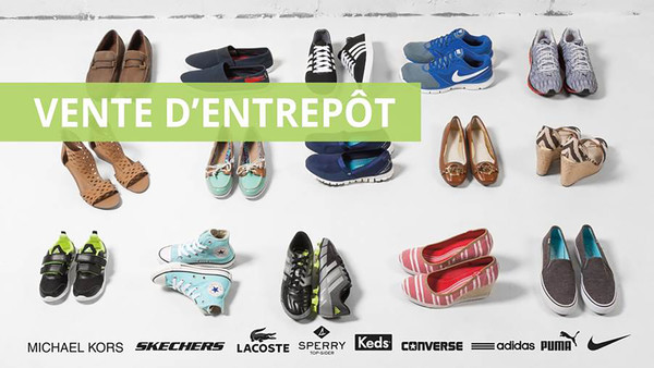 La vente d'entrepôt RUBINO du jeudi 28 avril au 1 mai. Seulement 4 jours! Préparez-vous à économiser jusqu'à 70% sur vos marques de chaussures et sandales préférées pour femmes, hommes et enfants. Keds, Skechers, Sperry Top Spider, Adidas...
