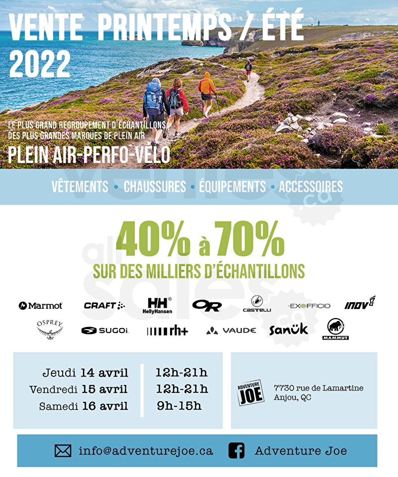 ANNULÉE - Veuillez prendre note que la vente printemps/été 2022 Joe Aventure du 14 au 16 avril a été annulée.