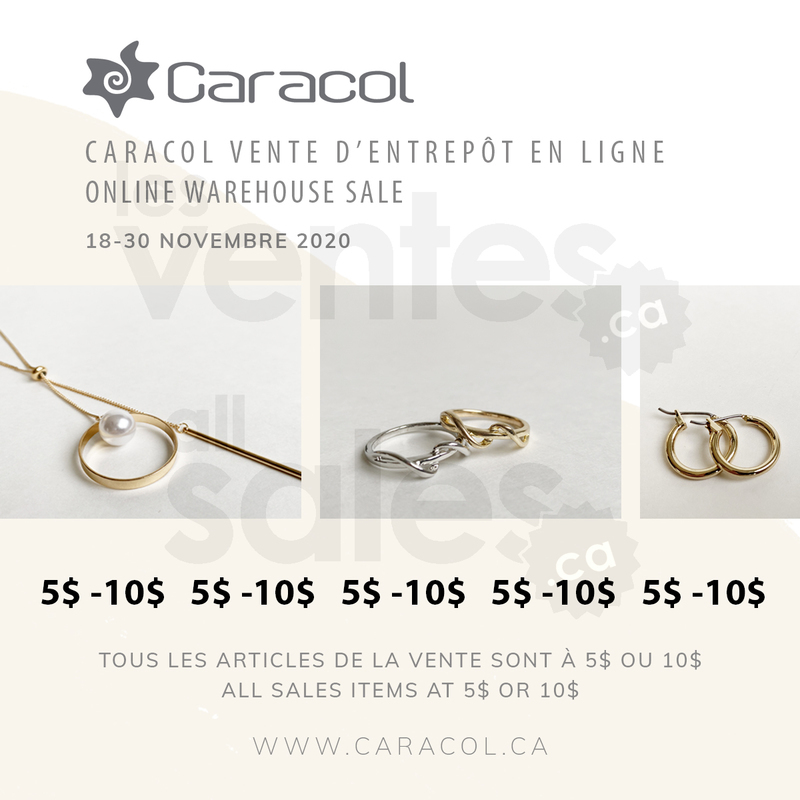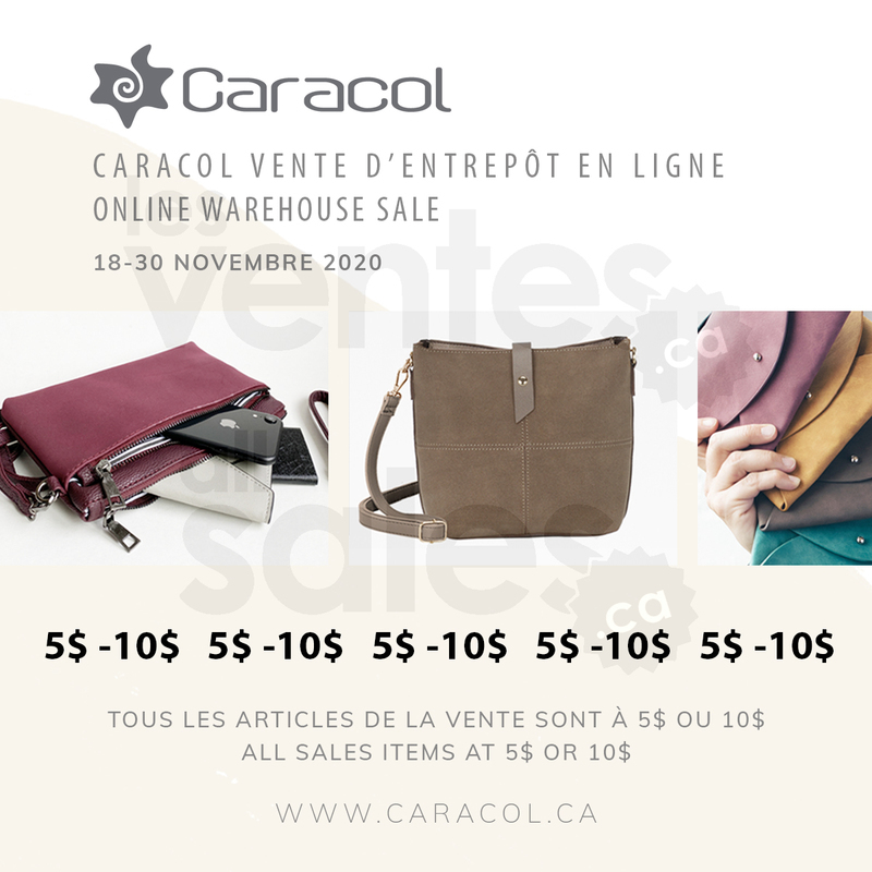 Du 18 au 30 novembre, visitez la vente d’entrepôt en ligne sur www.caracol.ca. Tous les articles sont à 5$ et 10$! Livraison gratuite avec achat de 75$ et plus. Tarif unique de 10$ partout au Canada.