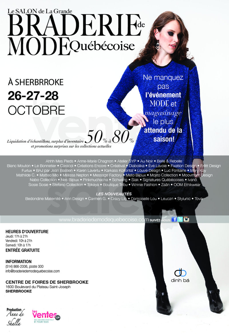 Ne manquez pas le rendez-vous mode et magasinage le plus attendu à Sherbooke : la Grande Braderie de mode québécoise les 26-27-28 octobre 2017. Avec plus de 40 designers participants et des rabais jusqu'à 80%!