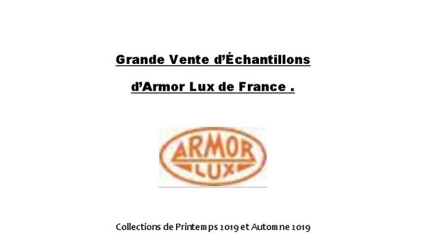 Grande vente d'échantillons vêtements européens Armor Lux du 6 au 8 juin et du 12 au 14 juin! Obtenez des rabais énormes sur les collections Printemps / Automne 2019 pour femmes, hommes et enfants!