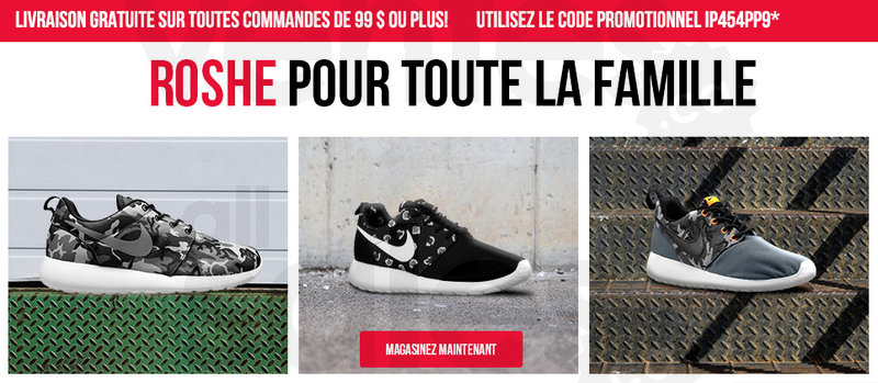 *Utilisez le code promotionnel IP454PP9 à la caisse. La case du code promotionnel/source se trouve à l'étape 4 en passant à la caisse. La valeur de la commande doit être de 99 $ ou plus avant les services, les taxes, la livraison et la manutention. Valide seulement pour la marchandise admissible achetée sur le site footlocker.ca. L'offre ne s'applique pas aux commandes en magasin. Elle se limite à la livraison régulière au Canada. Des restrictions de livraison peuvent s'appliquer pour certaines régions éloignées. Les commandes ne seront pas livrées à des cases postales. À l'exception des commandes par lot et des expéditions directes. La commande complète doit être envoyée à une même adresse. Ne s'applique pas aux achats précédents ni aux commandes ouvertes et ne peut pas être combinée à toute autre offre ou promotion. Le client doit payer les frais d'expédition pour la marchandise retournée. Ne peut pas être utilisé pour l'achat de carte-cadeau. L'offre promotionnelle peut être modifiée ou suspendue en tout temps par Foot Locker. Certaines restrictions et exclusions peuvent s'appliquer. L'offre expire le 12/31/2015 (23:59 heure centrale).