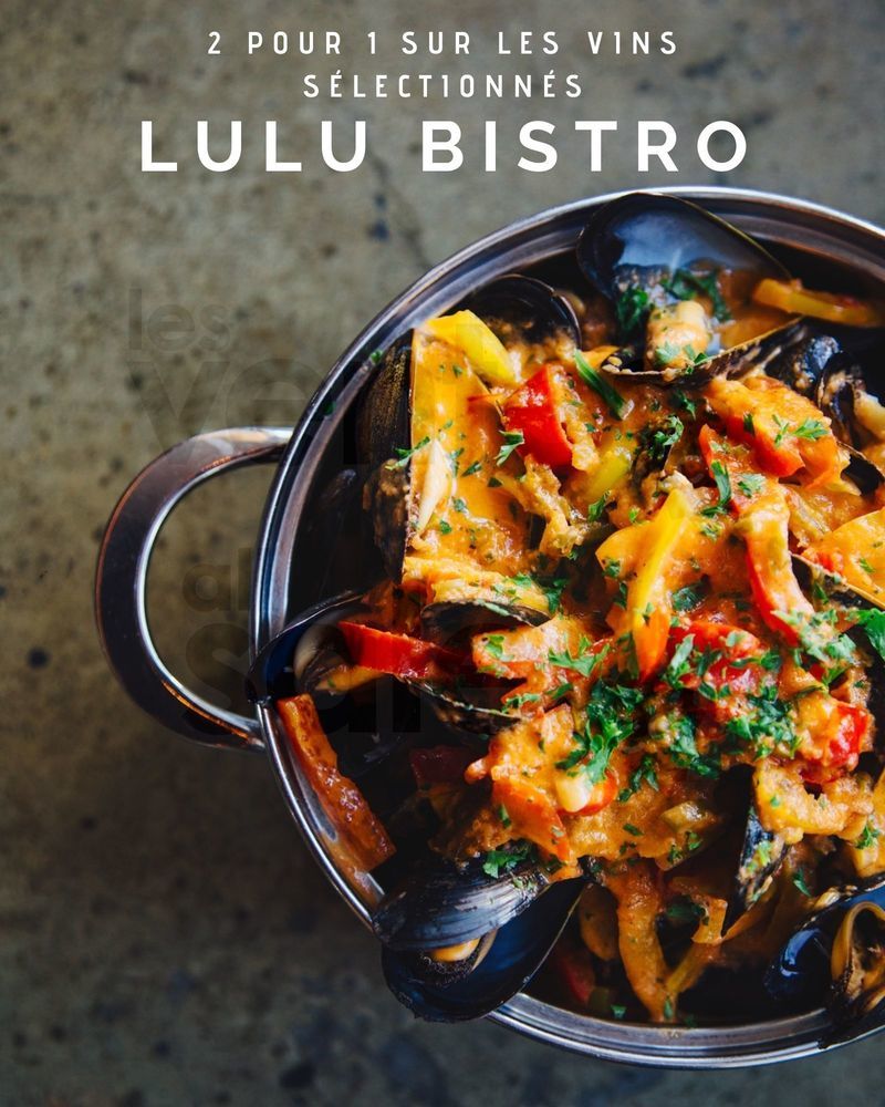 Lulu bistro vous offre 2 pour 1 sur les vins sélectionnés! Ne manquez pas votre chance de goûter leurs succulentes moules.