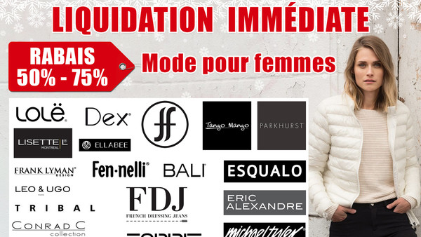 Grande liquidation de mode pour femmes! Vêtements et accessoires réduits de 50% à 75%: Lolë, Lisette L, Frank Lyman, Tribal, Dex, Fen-nelli, Bali, FDJ, ESPRIT, Eric Alexandre & plusieurs autres marques. 500 000$ en inventaire à liquider chez NH Inc.!