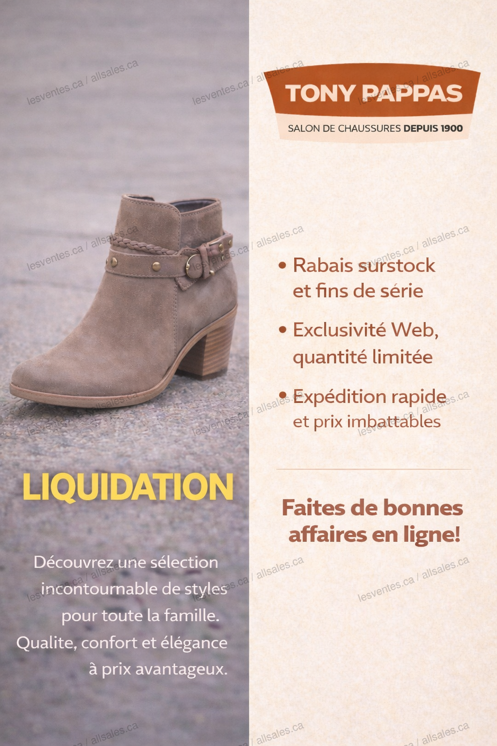 Liquidation chez Tony Pappas : des bottes, chaussures et sandales stylées à prix réduits jusqu’à -50 %! 🥳 Choisis parmi une vaste sélection pour femmes, hommes et enfants.