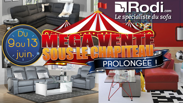 Ne manquez pas notre méga vente sous le chapiteau du 9 au 13 juin. Rodi, le spécialiste du sofa, et Électroménagers & Robinetterie Longueuil vous donnent rendez-vous, 5 jours seulement. Rabais jusqu’à 50% sur modèles sélectionnées, à ne pas manquer!
