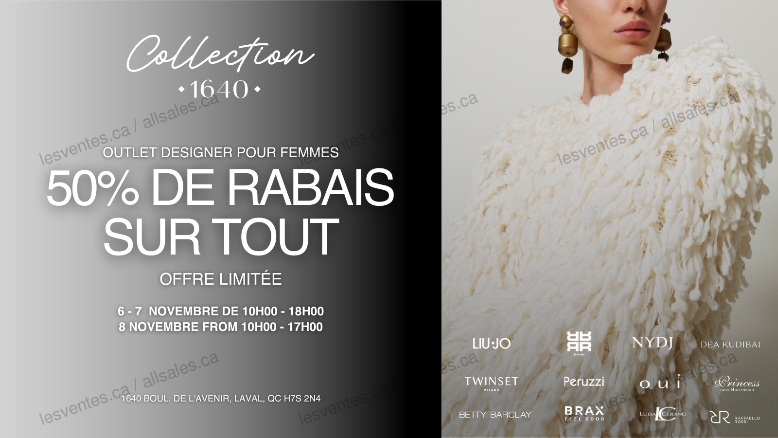 Vente 3 jours chez Collection 1640, outlet créateurs pour femmes! Liu-Jo, Twinset, Brax, Riani, Oui, Princess et plus, à prix exclusifs. Quantités limitées — à ne pas manquer!