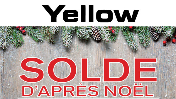 Profitez du solde d'après Noël dans tous les magasins et en ligne chez YELLOW! Du 26 décembre au 5 janvier, achetez 2 produits* et plus en solde, et nous paierons les taxes** pour vous!