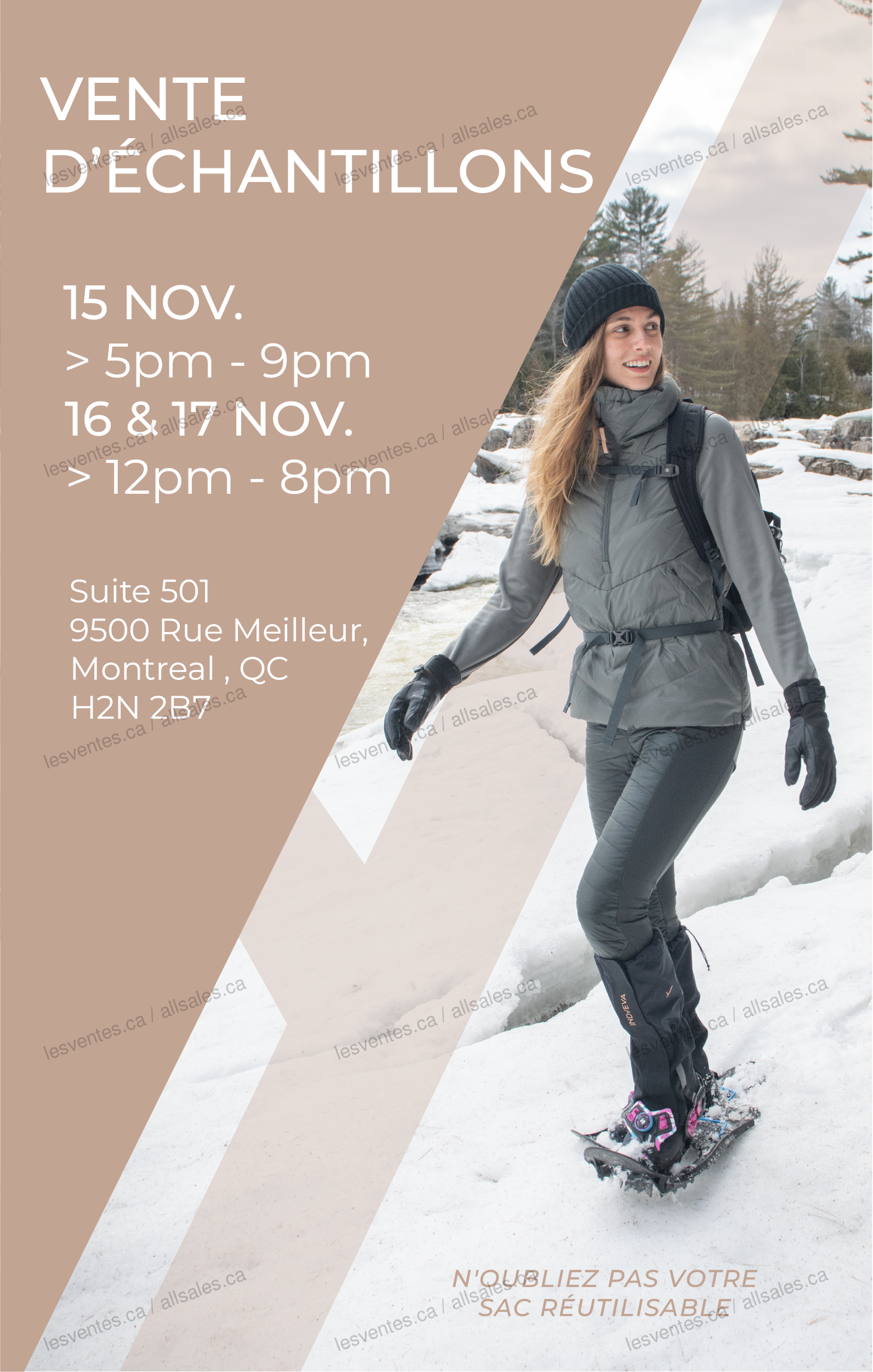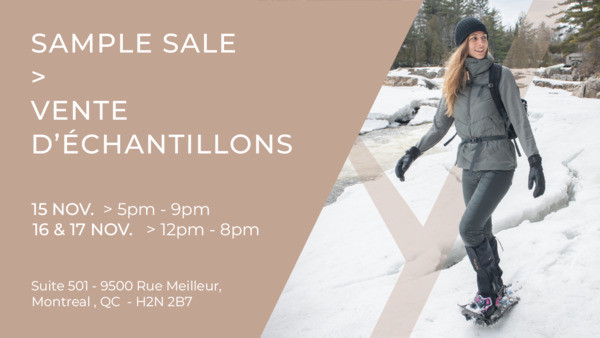 Vente d'échantillons Indyeva du 15 au 17 novembre à Montréal! Vous y trouverez des prototypes, des échantillons des dernières saisons, et bien plus encore. Vêtements d'extérieur pour femmes conçus à Montréal.