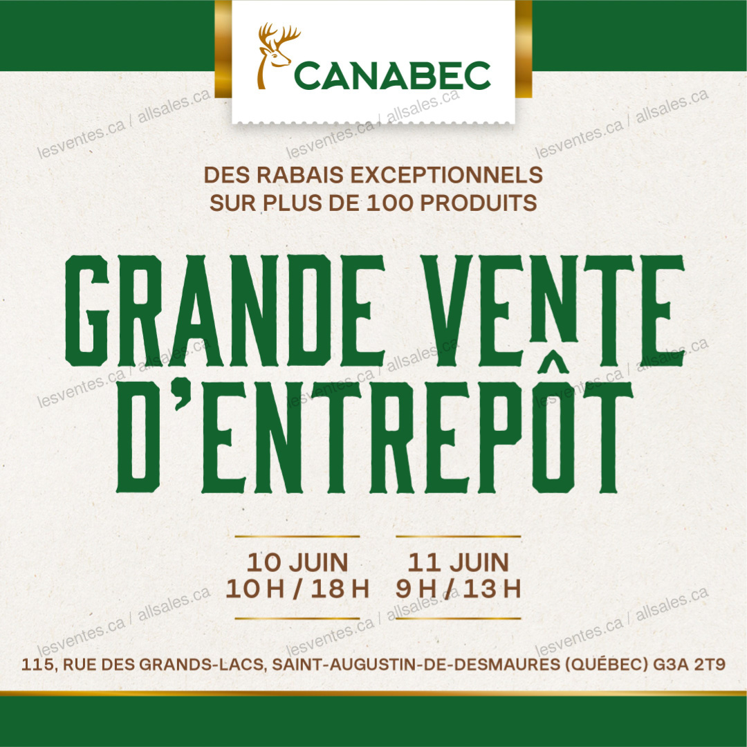 Grande vente d'entrepôt Canabec les 10 et 11 juin 2022. Profitez de rabais exclusifs et venez découvrir plus de 100 délicieux produits! C’est le moment idéal pour vous procurer nos viandes de qualité supérieure et faire des réserves pour l’été.