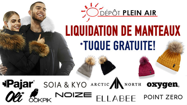 Plus de 15 marques & 100 styles tailles XXS à 4X! La plus grande sélection à Montréal de manteaux de qualité pour femmes & hommes jusqu'à -60% de rabais, conçu pour vous tenir au chaud jusqu'à -35C! Soia & Kyo, Pajar, Arctic North, Ookpik, Noize...