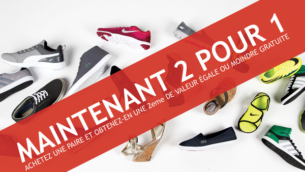 Dernière chance pour la grande vente entrepôt RUBINO! Achetez 1 paire & obtenez en 1 gratuitement*! Vos marques de chaussures et sandales préférées femmes, hommes, enfants. Michael Kors, SKECHERS, Lacoste, Sperry, Keds, Converse, PUMA, Nike et plus.