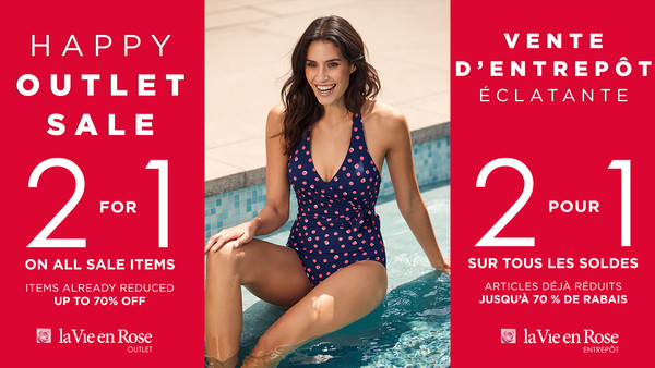 La Vie en Rose tient une méga vente d'entrepôt du 12 au 23 août 2020! Obtenez 2 articles pour le prix de 1 sur tous les soldes! Prix à partir de seulement 3,99$ - soutiens-gorge, culottes, lingerie, pyjamas, maillots et accessoires.