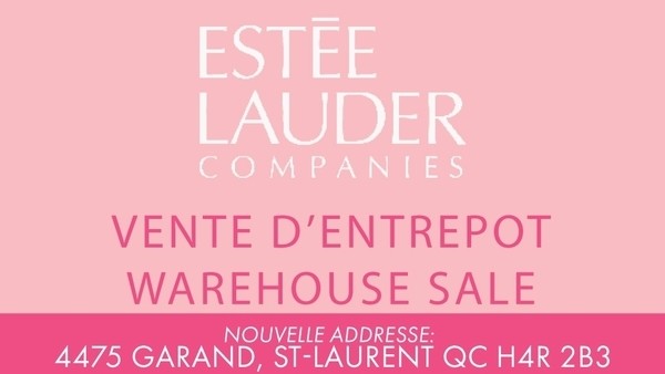 Vente d'entrepôt Estée Lauder Companies à Montréal - 5 jours seulement - du 5 au 9 novembre 2025! Obtenez 50% de réduction (ou plus !) sur Estée Lauder, Clinique, MAC, Too Faced, Smashbox, Bobbi Brown, Bumble and Bumble, Origins et plus encore. Plus